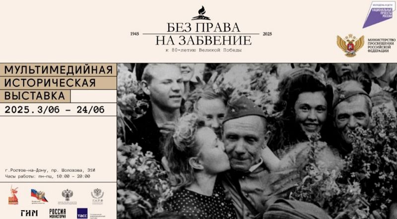 3 июня 2025 года в Центре исторического парка «Россия – моя история» откроется новая масштабная экспозиция, посвященная 80-летию Великой Победы, – «Без права на забвение». Эта уникальная мультимедийная выставка, созданная командой партнеров на основе музейных и архивных материалов, представляет собой адаптацию центрального выставочного проекта страны, представленного в Государственном историческом музее по поручению Президента РФ В.В. Путина.