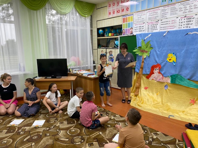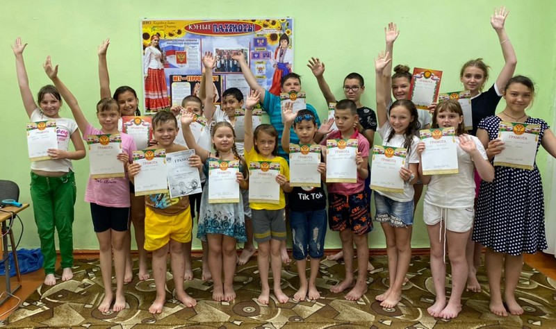 Закончился сегодняшний день подведением итогов лагерной смены- вручением грамот за активное участие в жизни лагеря. Финальной точкой работы лагеря стал спуск флага лагеря.