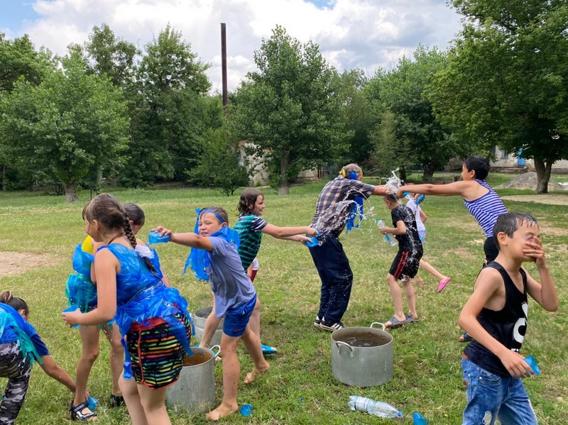 Полные сил, вернувшись с обеда, уже по традиции, дети отметили праздник Нептуна, самый любимый летний праздник детей! Ребята брызгались водой из бутылок, бегали и прыгали!