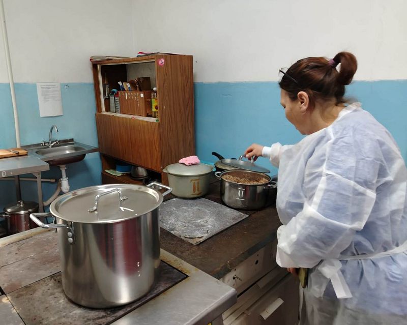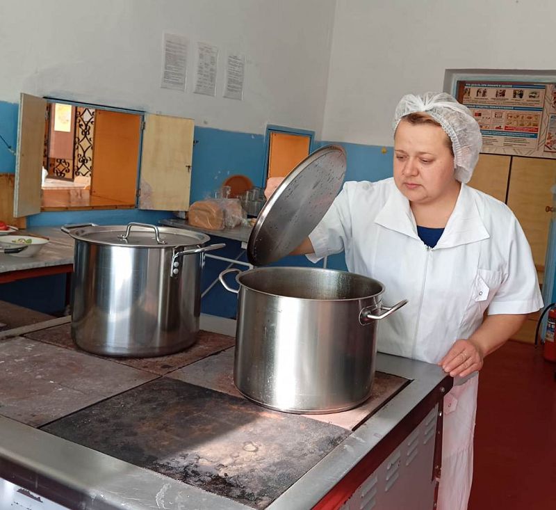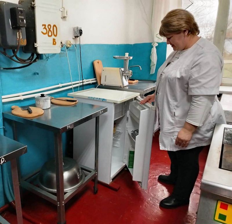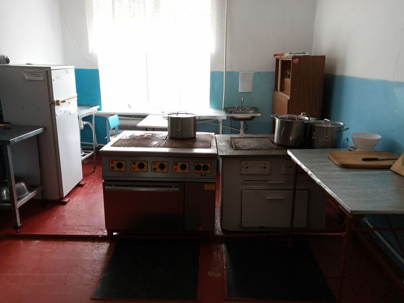 1 Состояние пищеблока удовлетворительное, столовая оборудована в полном объёме посудой, кухонным инвентарем, холодильным оборудованием, печами.