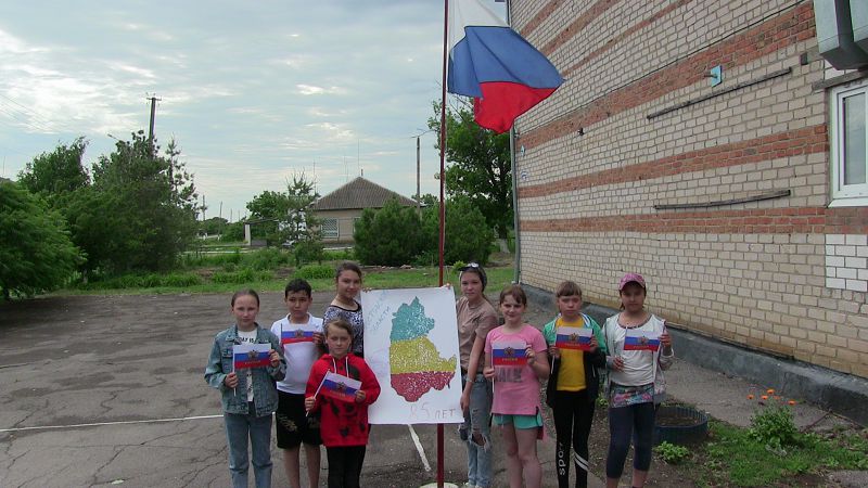 Клименко Данил торжественно поднял флаг, который ознаменовал начало работы летнего пришкольного лагеря «Дружбы».