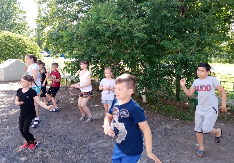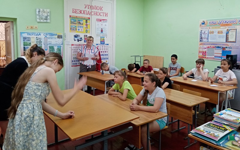 4-й день в пришкольном лагере «Дружба» выдался очень теплым и начался с веселой зарядки, а затем минутки безопасности «Солнечный ожог. Первая помощь при ожоге»