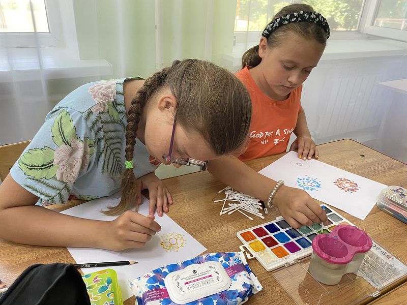 На увлекательном мастер-классе «Умелые Ручки» ребята учились одуванчики при помощи ватных палочек и красок.