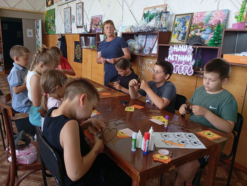 После вкусного обеда посетили сельский ДК, где под руководством Величко А. А. изготовили открытки " Хорошее настроение" и подарили их сотрудникам ДК и школы.