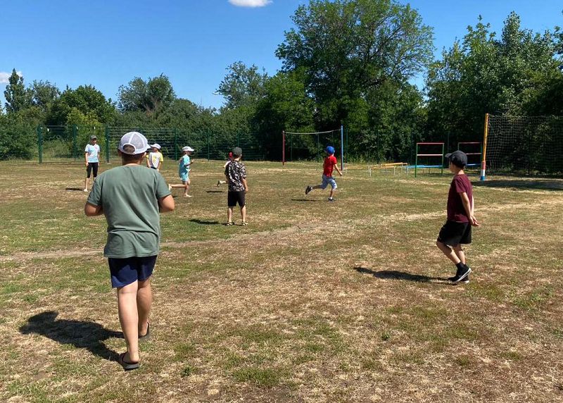 По традиции день в лагере начался с зарядки на свежем воздухе.