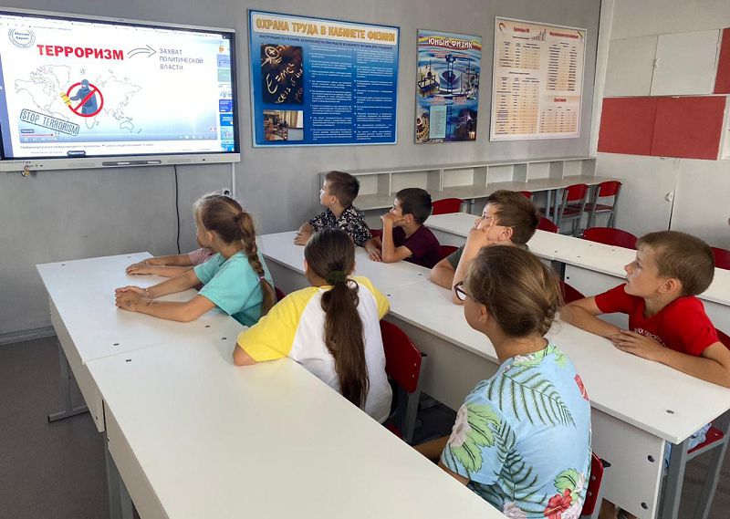 Далее прошла минутка безопасности «Антитеррор». Была проведена беседа о том, как не стать жертвой преступления, поговорили о правилах поведения при встрече с незнакомыми людьми или предметами, повторили правила поведения при теракте.
