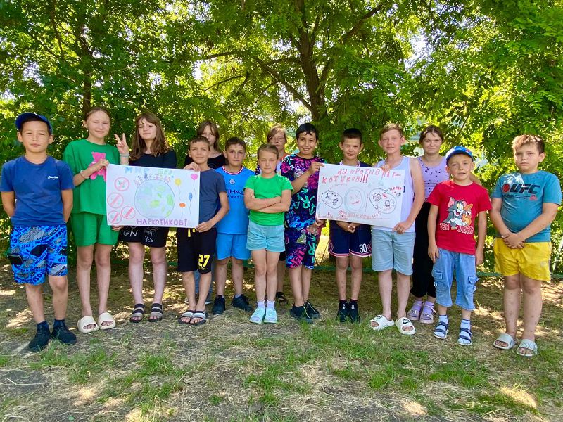 День начался с веселой зарядки и беседы о вреде наркотиков, в заключение беседы ребята нарисовали плакаты с призывом к здоровому образу жизни.