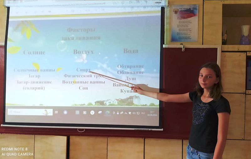 Второй день лагерной жизни был объявлен «Днем Орленка-эрудита». После зарядки была проведена Минутка здоровья «Закаливание воздухом». Дети послушали беседу и посмотрели презентацию.