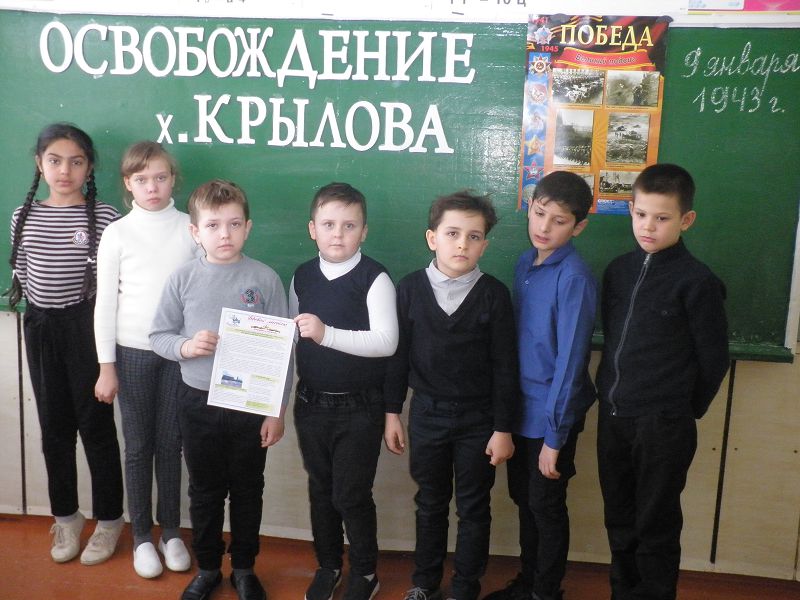 Учащиеся познакомились с историей освобождения х.Крылова от фашистских захватчиков. Вспомнили солдат-героев, погибших на Крыловской земле.