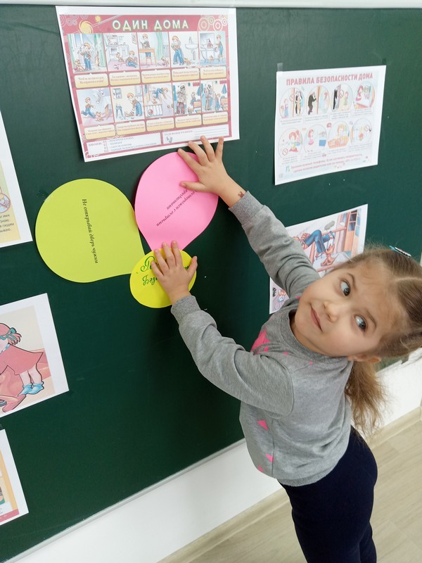 На протяжении всего занятия ребята, знакомясь с правилами безопасности, собирали «Ромашку безопасности».