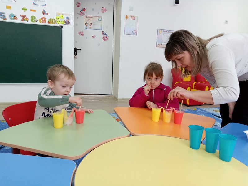Началось всё с минутки приветствия друг друга. А затем, ребята попали в лабораторию, где проводили опыты с водой, которые помогли узнать основные свойства воды: тяжёлая, прозрачная, безвкусная. Но, при добавлении, какого либо цвета в воду, вода меняет цвет. Так же и вкус, при добавлении какого либо вещества, вода меняет вкусовые свойства.