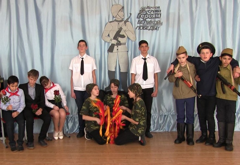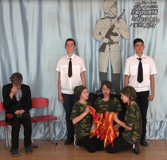 Ребята из 5-8 классов приняли участие в районном конкурсе инсценированной военной и патриотической песни «Песня солдатская моя», представив песню «Ты же выжил, солдат»