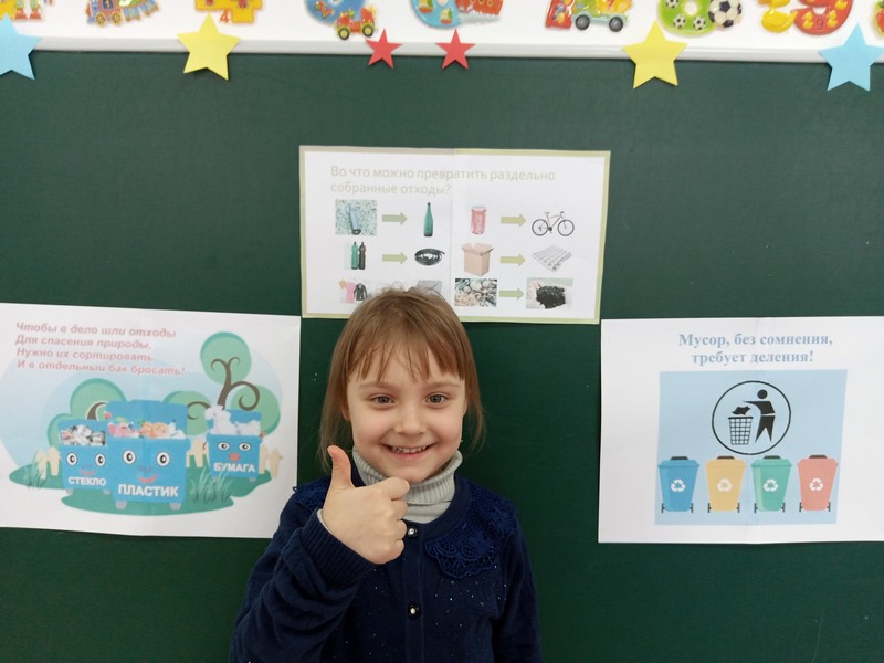 Раздельный сбор мусора еще один способ помощи природе. «Организуя раздельный сбор мусора, мы способствуем улучшению экологической обстановки. Ведь отходы могут быть использованы «вторично». В ходе занятия ребята активно отвечали на вопросы, делились своими знаниями в области экологии - таким образом, научились видеть в отходах не обычный мусор, а сырье для переработки и пришли к выводу о пользе раздельного сбора.