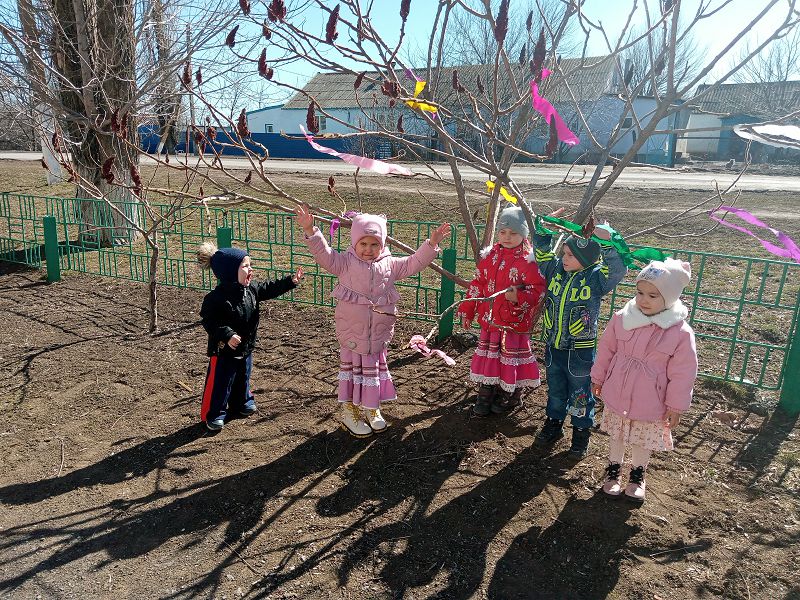 Ребята нашей дошкольной группы тоже сегодня Весну зазывали да в гости приглашали. Сначала вместе с детьми провели мастер-класс поизготовлению жаворонков из дрожжевого теста. Ребята с удовольствием создали поистине неповторяемые шедевры мастерства, а затем вышли на улицу , украсили деревце яркими лентами и стали зазывать Весну-красну: