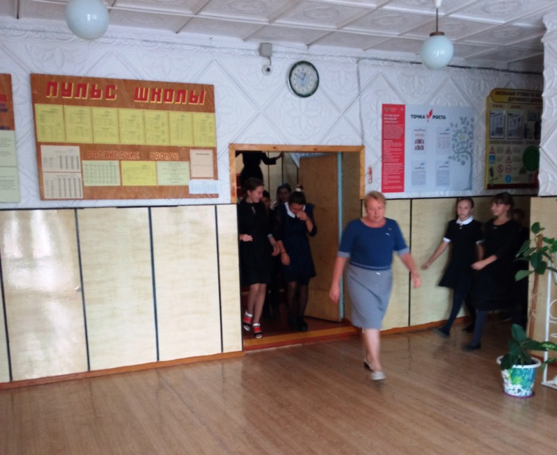Началом практической учебной эвакуации послужил полученный сигнал, информация о возгорании в подсобном помещении. Персоналом школы была организована эвакуация обучающихся из здания, все ученики и педагоги по сигналу тревоги быстро покинули здание школы по эвакуационным выходам. Педагоги провели перекличку и доложили о численности детей. В ходе переклички выяснилось, что в здании никто не остался, все эвакуировались за положенное время. С ребятами была проведена беседа о правилах поведения при пожаре.
