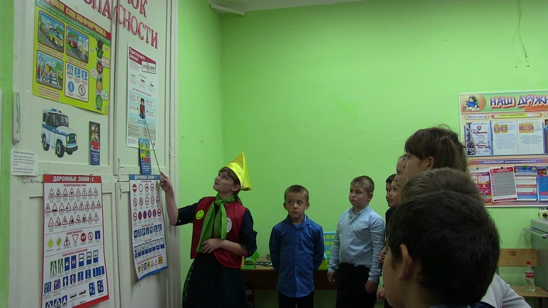 После занятий командир отряда ЮИД Налесникова Диана провела минутку безопасности с учащимися начальных классов. Она рассказала ребятам, с какого возраста ребёнок может ехать в автомобиле на переднем сидении, для чего используется ремень безопасности, напомнила ребятам о необходимости выполнения правил перехода улицы.