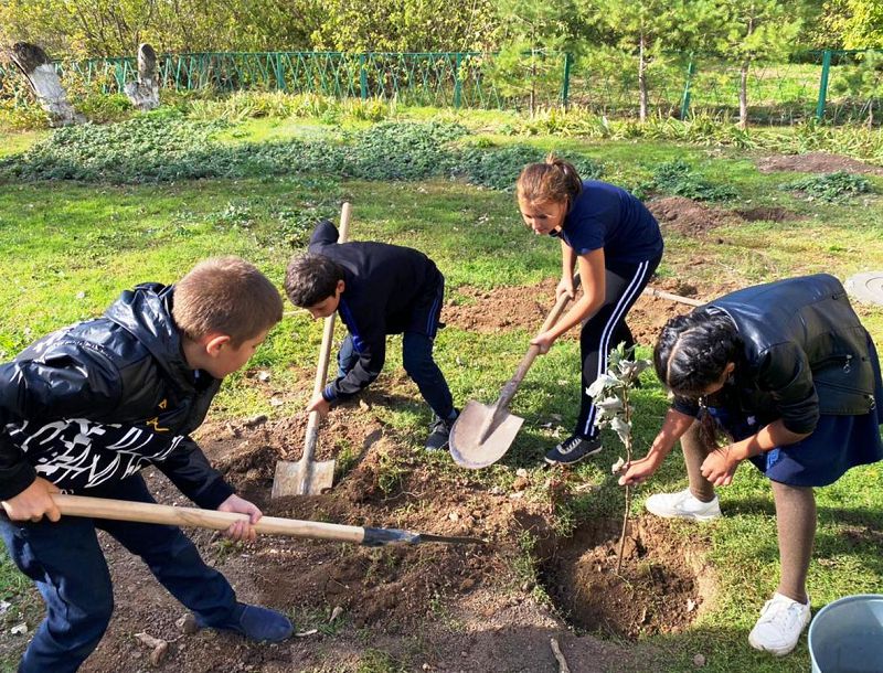 Ежегодно в третью субботу октября тысячи жителей Дона присоединяются к работе по озеленению родного края. Наша школа приняла, посадив во дворе саженцы рябины.