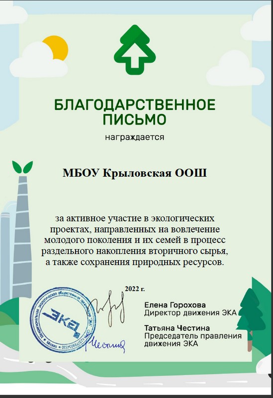 Региональный штаб зеленого движения «ЭКА» Ростовской области благодарит коллектив школы за организацию акции в рамках учреждения! А также всех родителей ребят, которые приняли активное участие в сборе вторичного сырья!