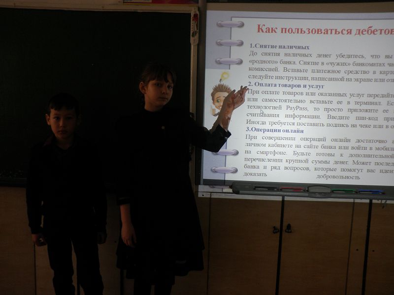 В рамках недели финансовой грамотности 10 ноября в 3,4 классах прошел урок на тему: «Дебетовая и кредитная карта».В ходе занятия дети познакомились с видами банковских карт, выяснили отличие дебетовой карты от кредитной. Узнали значение новых понятий: кредитный лимит, льготный период, штрафные санкции, кредитная история.