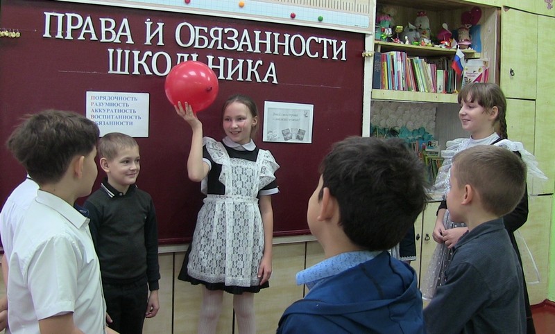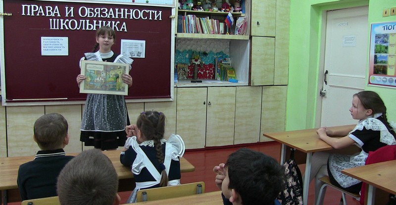 Во время классного часа были рассмотрены права детей, записанные в Конвенции о правах ребёнка. Ребята обсуждали жизненные ситуации, в которые попадают знакомые им сказочные и литературные герои, чьи права были нарушены с точки зрения международного права. Дети активно участвовали в играх «Если бы директором был я», «Найди ошибку» и др.
