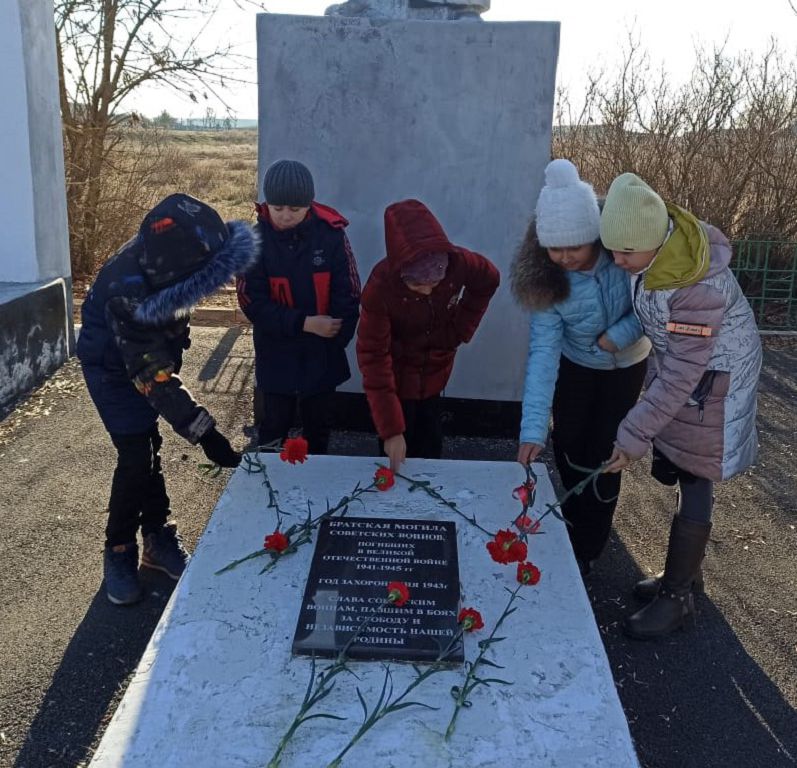 Ребятам напомнили о том, что люди не вправе забывать, какой ценой завоеван мир на земле, о том, что нужно помнить солдат, сохранивших для нас светлое будущее. Подвиги героев Великой Отечественной войны участники митинга почтили минутой молчания и возложили цветы к монументу воина с автоматом.