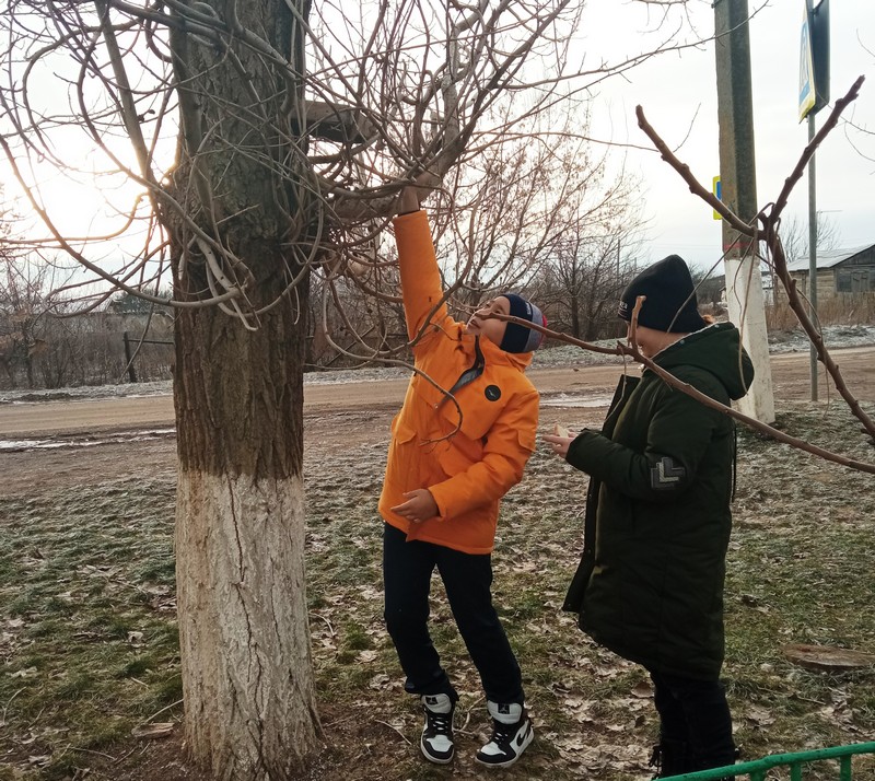 Шестиклассники решили сделать кормушки и развесить около школы, чтобы можно было подкармливать птиц зимой.