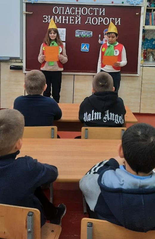 В рамках областного профилактического мероприятия «Зимние безопасные дороги» во 2-4 классах прошёл классный час «Опасности зимней дороги».