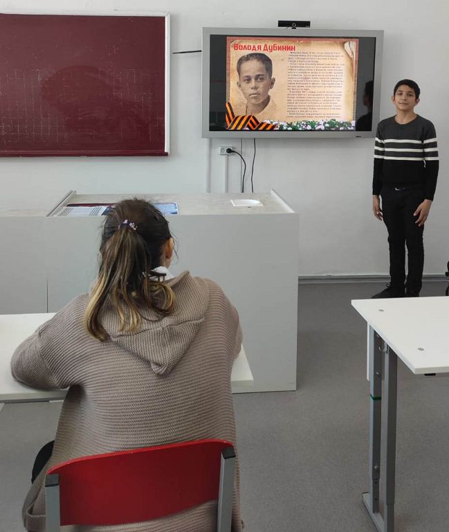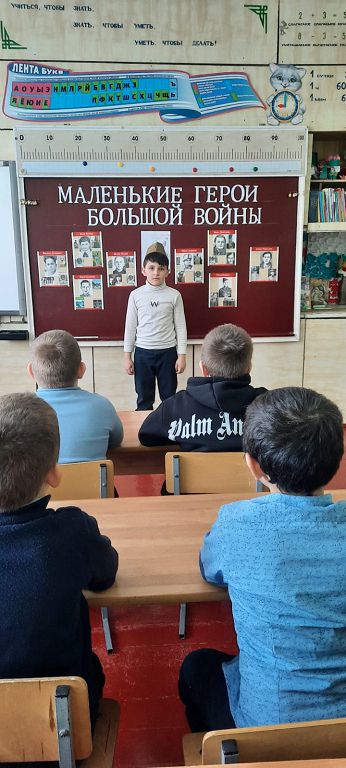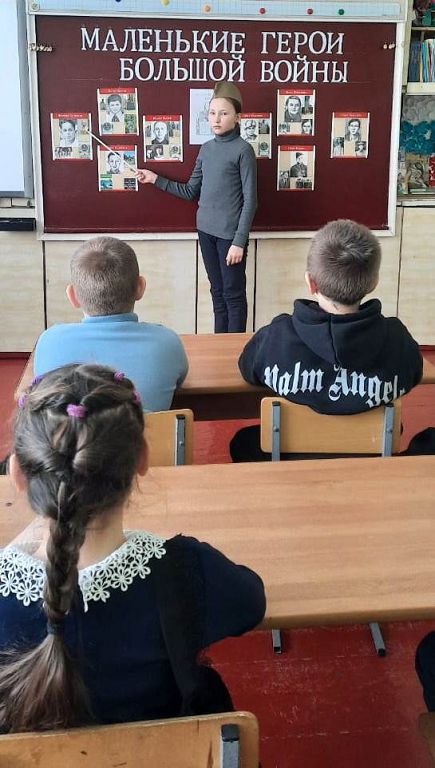 Ребята подготовили для одноклассников сообщения, стихи о мальчишках и девчонках, которые за подвиги, совершённые в годы Великой Отечественной войны, были удостоены самой высокой награды Родины - звания Героя Советского Союза.