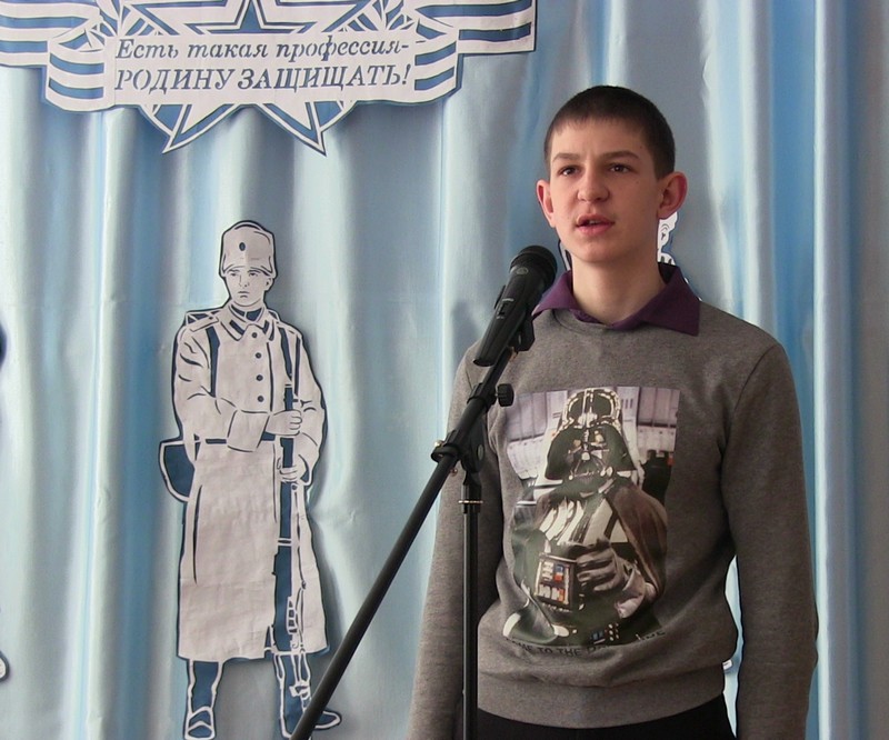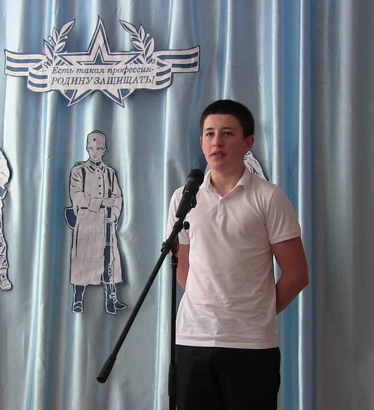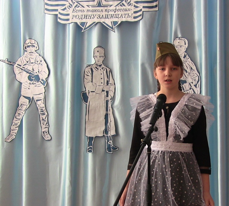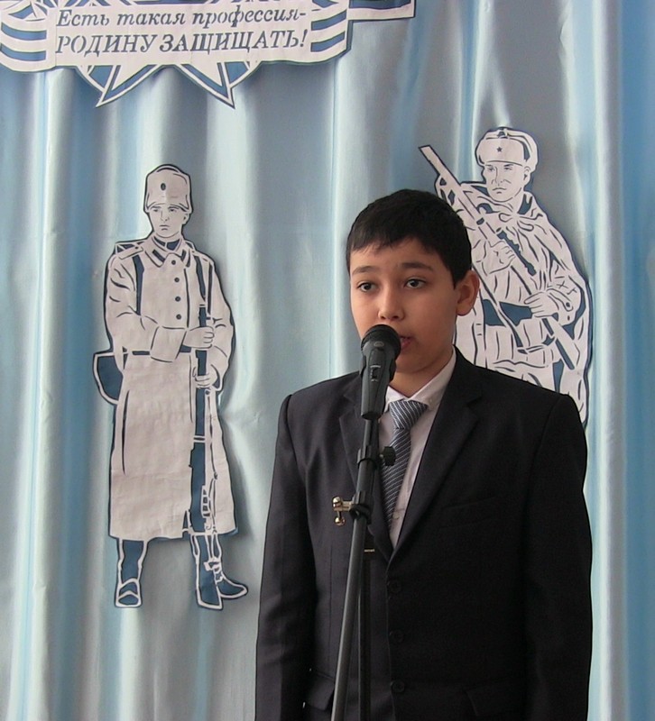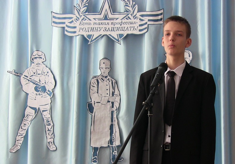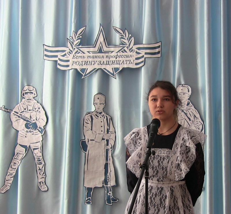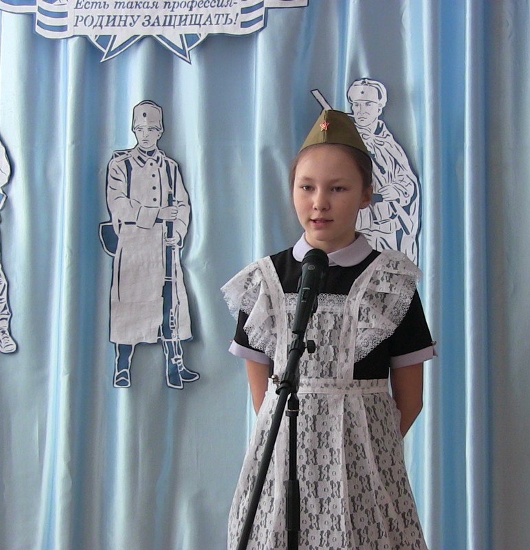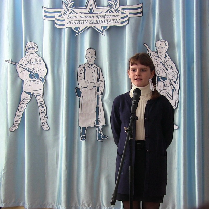 20 февраля в школе прошел конкурс чтецов « Защитникам Отечества посвящается…». В нем приняли участие учащиеся 2-9-х классов. Один за другим выходили на сцену участники мероприятия.