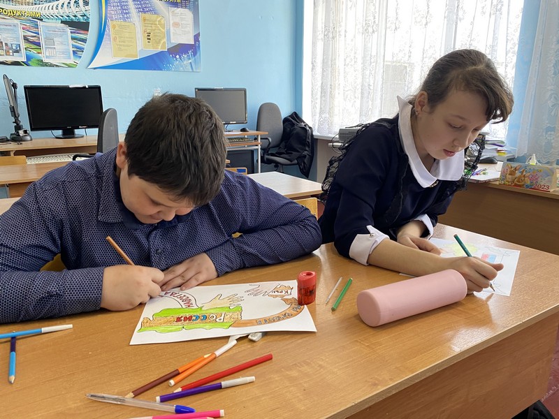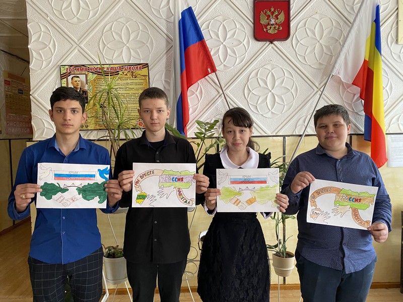 В 8 классе был проведён классный час на тему «Крым и Россия – вместе навсегда». Главными целями было воспитание у учащихся патриотизма и расширение кругозора знаний об истории России, конкретно о событиях, связанных с присоединением полуострова Крым к Российской Федерации.