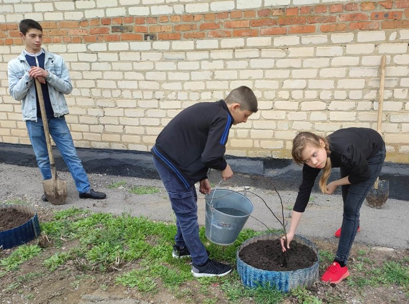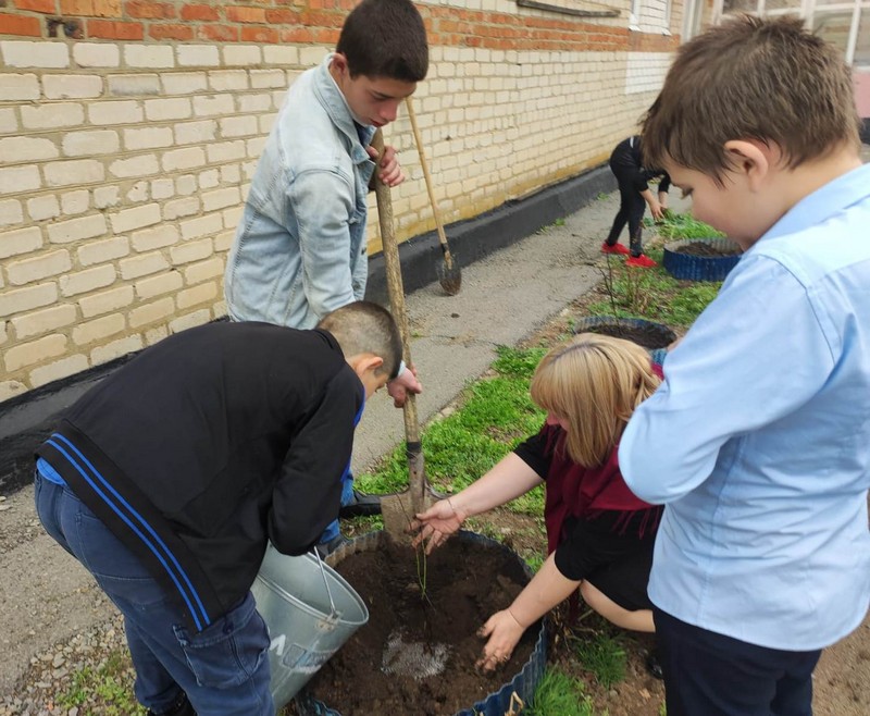 Сегодня в нашей школе прошла ежегодная экологическая акция "День древонасаждения". Дети совместно с педагогами высадили деревья, кустарники и цветы, привели в порядок клумбы.