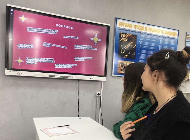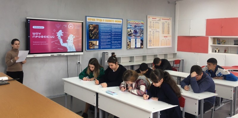 Для учащихся 7-8 классов было проведено интерактивное профориентационное занятие в виде игры-соревнования «Шоу профессий».