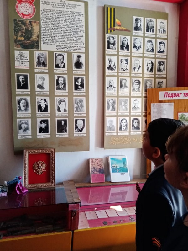 Посетив школьный музей, ребята узнали о подвигах наших односельчан в годы Великой Отечественной войны. На стендах увидели фотографии своих близких и родных, поделились воспоминаниями о них.