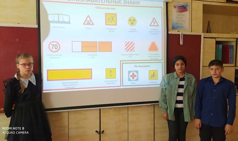 Классный руководитель Осыфляк Л.В. познакомила учащихся с назначением и местом установки номерных, опознавательных знаков и надписей на транспортных средства, с дорожными знаками. Ребята посмотрели презентацию и ответили на вопросы.