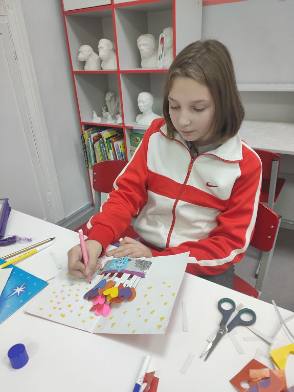 В творческом мастер-классе по изготовлению открыток с сердечками ребята сделали для мам открытку своими руками. И не просто сделали, но и написали те самые важные слова, которые они хотят сказать маме о том, какая она.