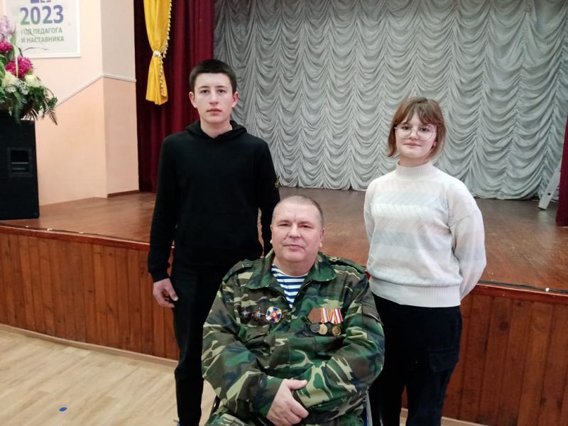 Сегодня ребята 7 класса побывали на встрече с ветераном Афганской войны, воином-интернационалистом Мартыновым Сергеем Петровичем. Встреча прошла замечательно: ребята внимательно слушали рассказ о нелёгком жизненном испытании, выпавшем на его долю и не сломившем его, благодаря силе духа, мужественности, физической подготовке.