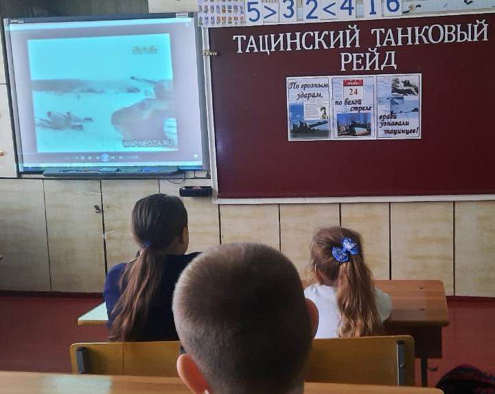 22 декабря в 1-4 классах прошёл классный час, посвящённый 81 годовщине Тацинского танкового рейда под командованием генерала В.М.Баданова. Ребята посмотрели видиофильм рассказывающий о боях во время Великой Отечественной войны за станицу Тацинскую, о героическом подвиге танкистов и пионеров Гриши Волкова и Феди Игнатенко.