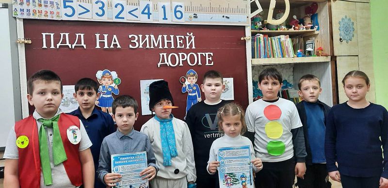 Главное правило поведения на дороге зимой - удвоенное внимание и повышенная осторожность. Дети редко акцентируют внимание на специфические "зимние" опасности, поэтому юидовцы в форме игры-викторины и участия сказочного героя Снеговика напомнили о необходимости правил поведения на зимней дороге, рассмотрели различные ситуации безопасности жизни и здоровья в зимнее время, закрепили знание дорожных знаков и вручили памятки поведения на зимних каникулах.