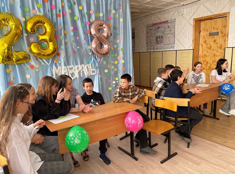 Для учащихся старших классов прошла конкурсная программа, посвященная 8 марта и 23 февраля - «Мавраль». В начале мероприятия дети разделились на 2 группы, придумали названия своим командам.