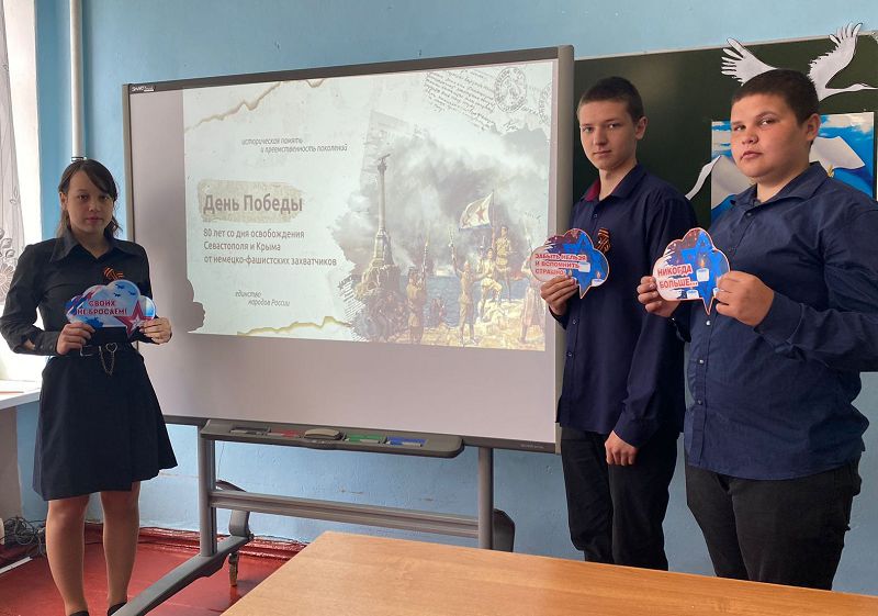Сегодня в школе прошел традиционный разговор о важном на такую значимую тему «ДЕНЬ ПОБЕДЫ. 80-ЛЕТ СО ДНЯ ОСВОБОЖДЕНИЯ СЕВАСТОПОЛЯ И КРЫМА ОТ НЕМЕЦКО-ФАШИСТСКИХ ЗАХВАТЧИКОВ».