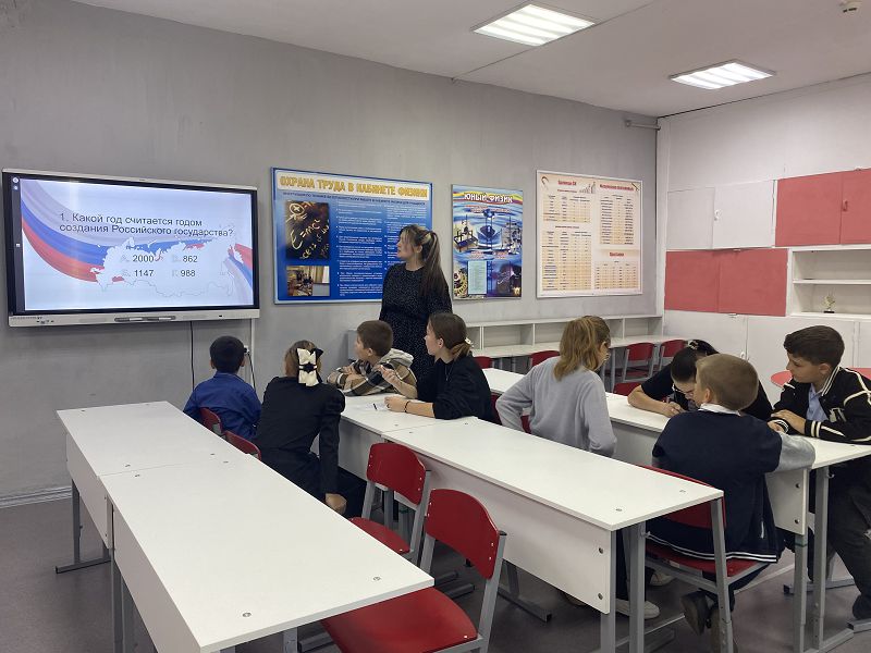 Каждое государство имеет точку отсчета. Каждое ведет свою историю с какого-то дня и какого-то года. Таким днем отсчета для России считается 21 сентября. Для учащихся нашей школы советник директора по воспитанию провела интеллектуальную игру «От Руси к России». Ребята вспомнили и узнали новые факты о нашем государстве.