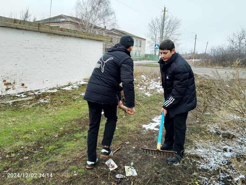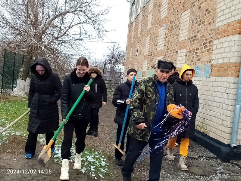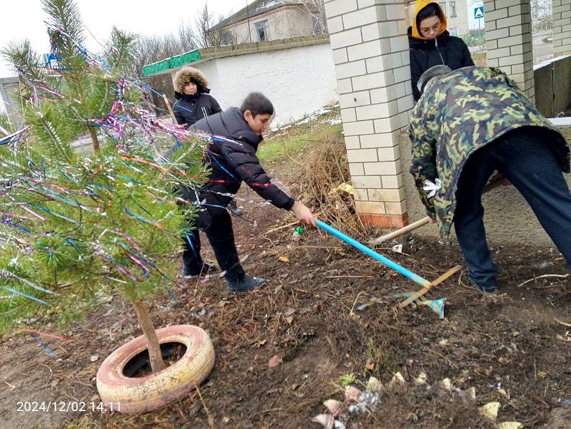 Учителем физкультуры и технологии Величко В.А. совместно с советником директора по воспитанию был организован эко-марафон для участников школьного волонтерского отряда. Ребята отправились по составленному маршруту, по дороге убрали территорию бывшего магазина и остановки, а также нарядили елочку к Новому году.