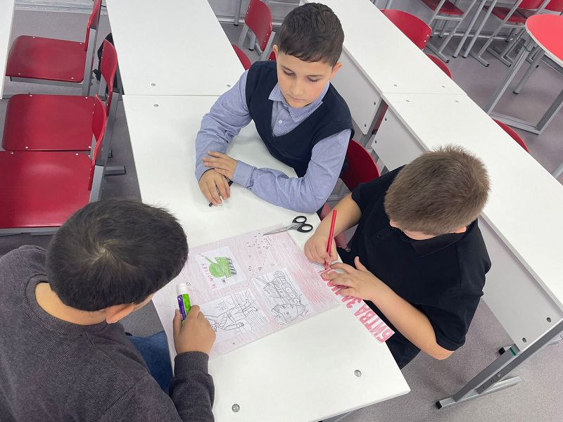 Учащиеся 5 класса выполнили плакат ко дню битвы за Москву.