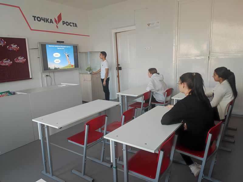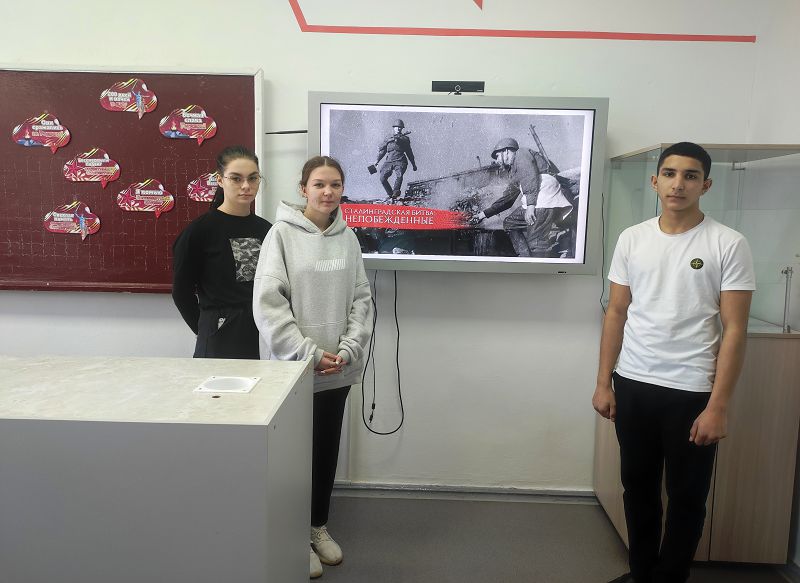 В ходе урока был показан видеофрагмент о ключевых моментах Сталинградской битвы, о героических страницах города-героя, который сдерживал натиск вермахта. Итогом классного часа стала викторина на знание дат, терминов, событий Сталинградской битвы.