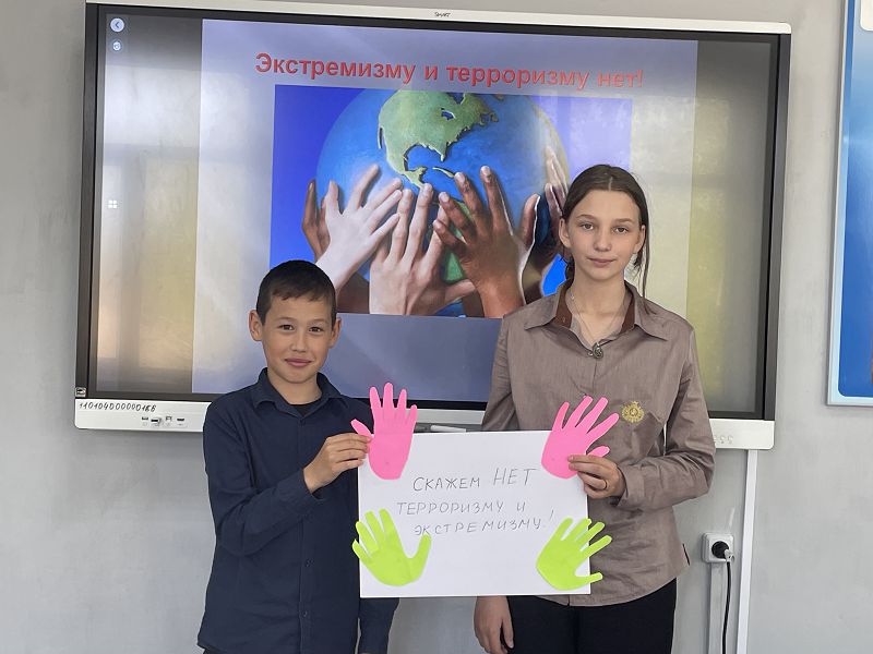 В целях профилактики экстремизма и терроризма среди учащихся начальных классов прошёл классный час на тему «Экстремизму и терроризму НЕТ!». Ребятам было рассказано о том, что такое экстремизм и терроризм, кто такие террористы.