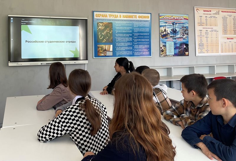 В нашей школе прошло очередное внеурочное занятие в рамках Разговоров о важном - «Труд крут». Учащиеся познакомились с деятельностью Российских студенческих отрядов (РСО), расширили свой профессиональный кругозор.