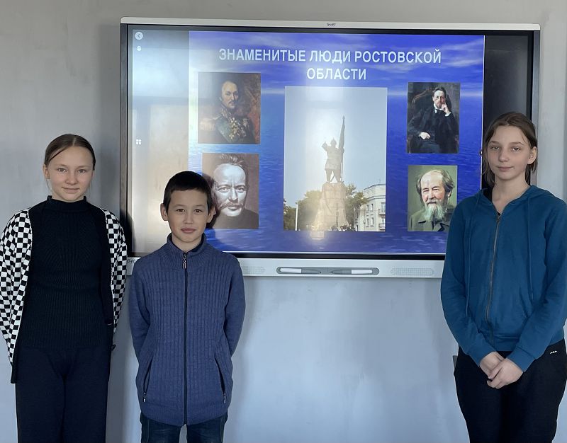 В 5 классе прошел классный час «Знаменитые люди Ростовской области». Ребята познакомились с земляками, которые внесли большой вклад в сокровищницу не только российской, но и мировой культуры – Антон Чехов, Михаил Шолохов, Виталий Закруткин, Анатолий Калинин. В конце мероприятия учащиеся познакомились с их произведениями.