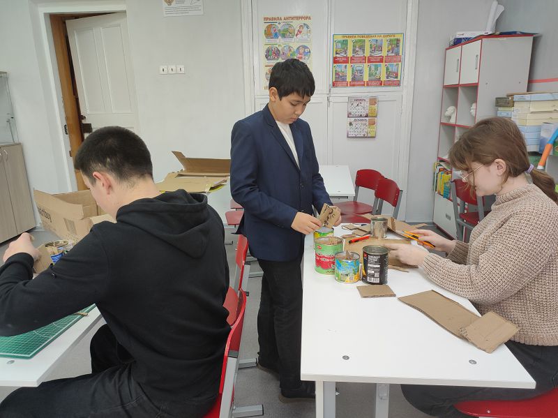 В нашей школе ученики 4-9-х классов помогают участникам специальной военной операции. Ребята делают заготовки для окопных свечей с помощью картона и консервных банок. Далее их заливают в сельской библиотеке совместно с советником, библиотекарем, работниками ДК. Эти свечи передадут тепло детских рук нашим защитникам.