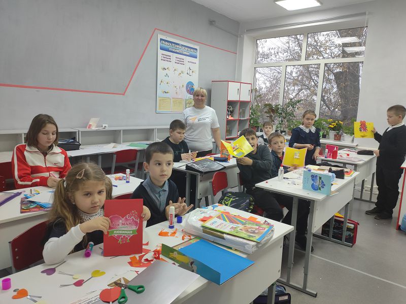 В творческом мастер-классе по изготовлению открыток с сердечками ребята сделали для мам открытку своими руками. И не просто сделали, но и написали те самые важные слова, которые они хотят сказать маме о том, какая она.