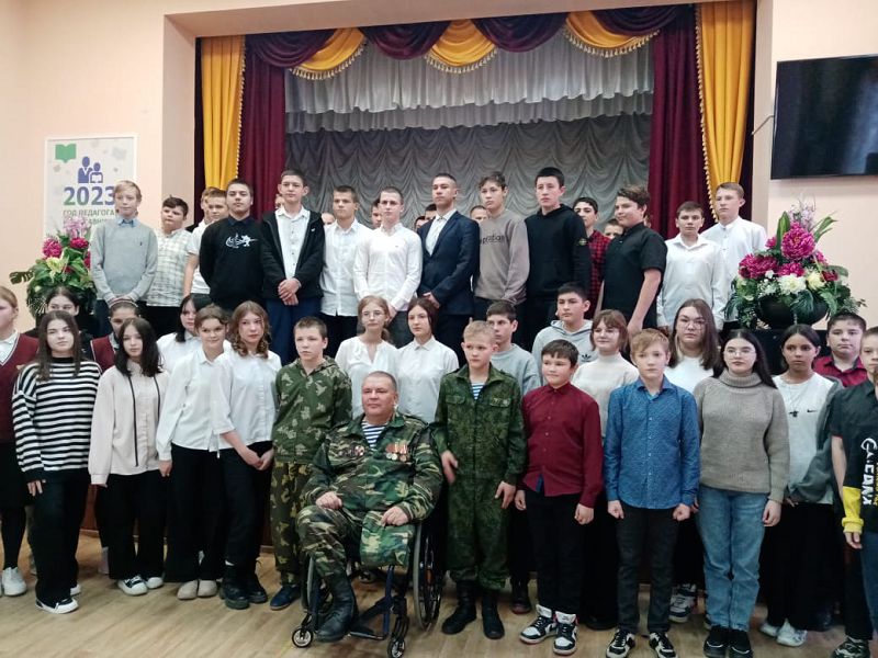 Сегодня ребята 7 класса побывали на встрече с ветераном Афганской войны, воином-интернационалистом Мартыновым Сергеем Петровичем. Встреча прошла замечательно: ребята внимательно слушали рассказ о нелёгком жизненном испытании, выпавшем на его долю и не сломившем его, благодаря силе духа, мужественности, физической подготовке.
